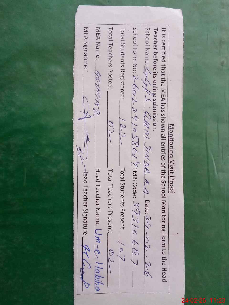 | EMIS Code: 39310687 | Name of School: GGPS QAIM JINDE KA | |||