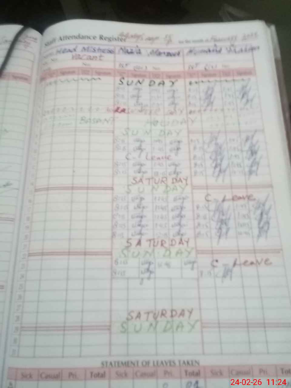 | Leave | Duty | Absent | Maternity | Medical | Ex- Pak |