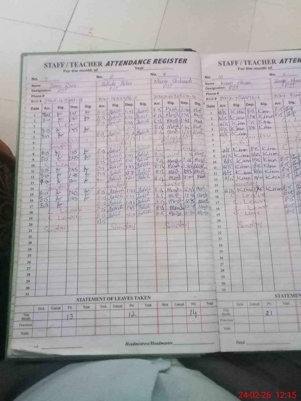 | 31**** | Ki**** Eh**** | PST Science/Maths | Regular | 0 | 0 | 0 | 0 | 0 | 0 | 0 | 0 | 0 | Absent (Un-Authorized) |