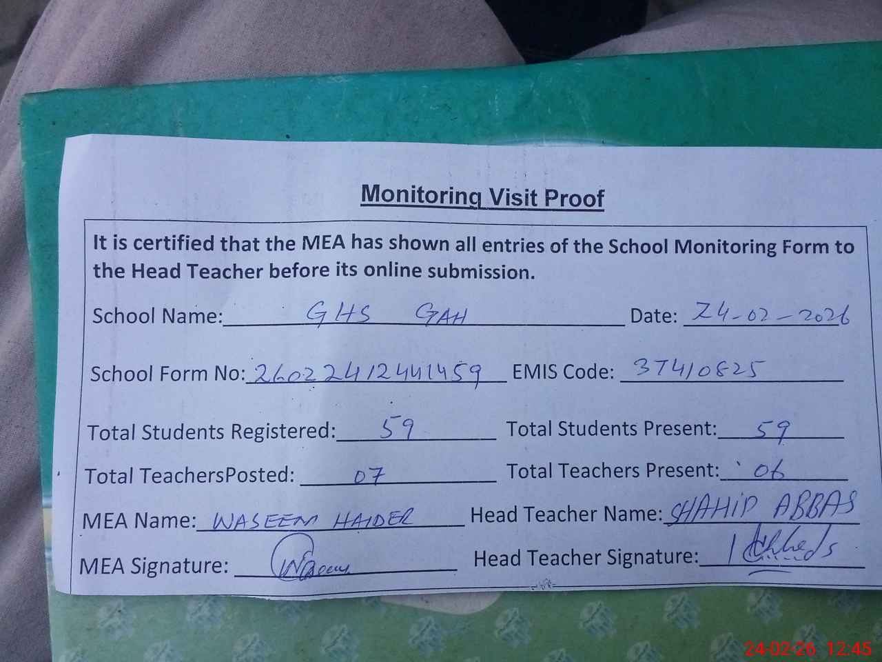 | EMIS Code: 37410825 | Name of School: GHS GAH | |||