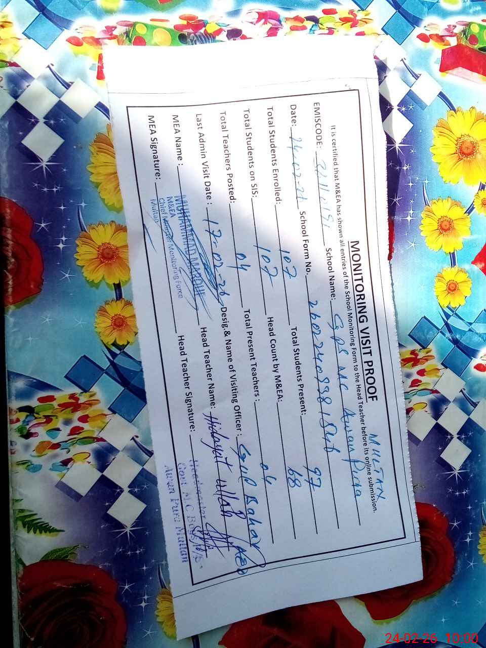 | EMIS Code: 36110191 | Name of School: GPS MC AWAN PURA | |||