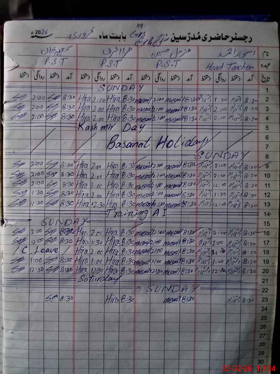 | Name: IS**** AH**** Designation: (School Headmaster's/Headmistress's) PST/PTC/JV Phone/Cell Number: 03**** |