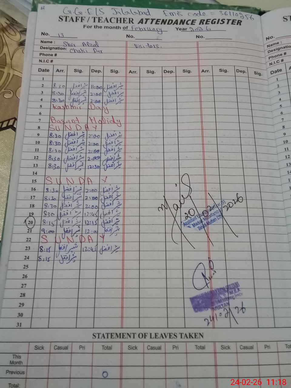 | EMIS Code: 36110256 | Name of School: GGES JALAL ABAD MUZAFFAR ABAD | |||