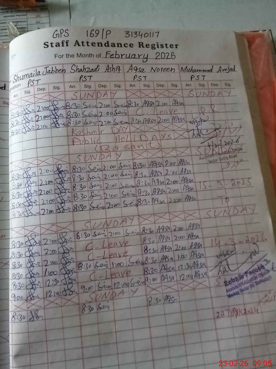| Name: Sh**** Designation: (School Headmaster's/Headmistress's) PST Phone/Cell Number: 03**** |