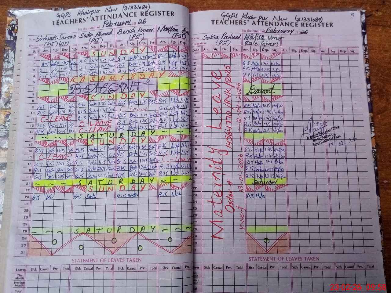 | 31**** | So**** Ra**** | PST Science/Maths | Regular | 0 | 0 | 0 | 0 | 0 | 0 | 0 | 0 | 0 | Maternity |