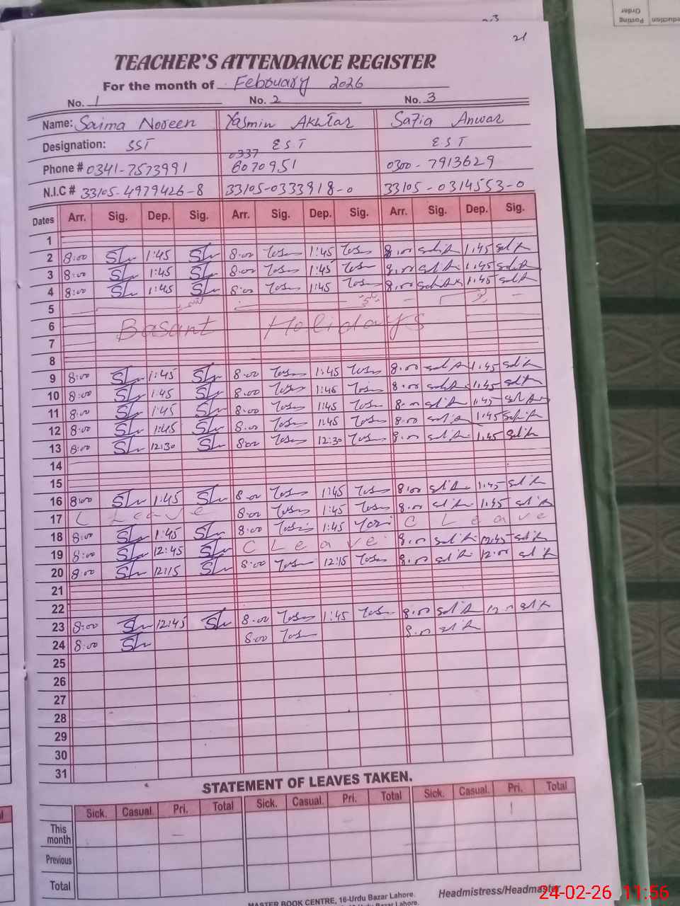 | Name: SA**** NO**** Designation: (School Headmaster's/Headmistress's) SST (GENERAL) Phone/Cell Number: 03**** |