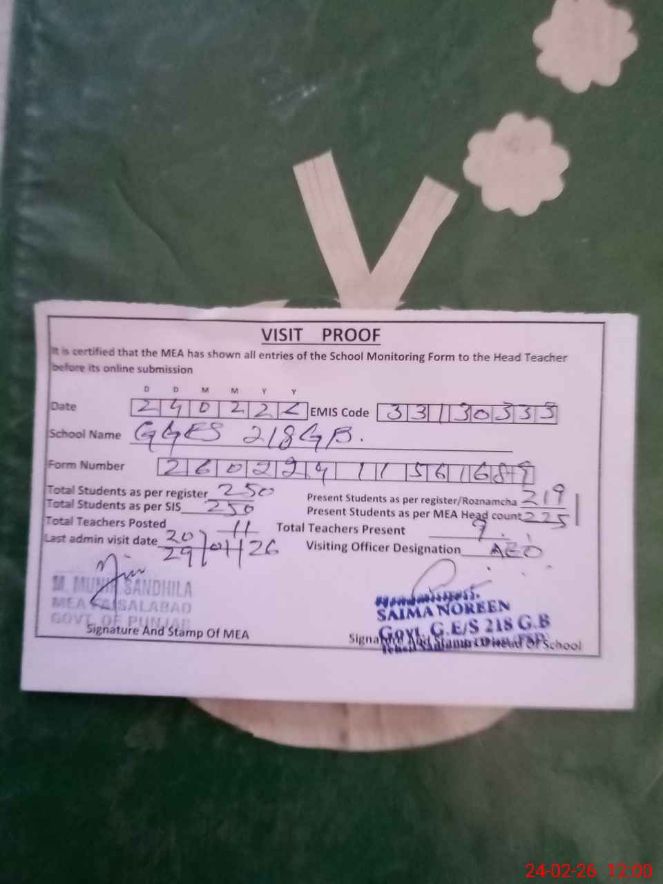 | Certified that this School was Inspected by the Undersigned MEA/DMO Today and the Information Stated Above is as Per Record. | |||||