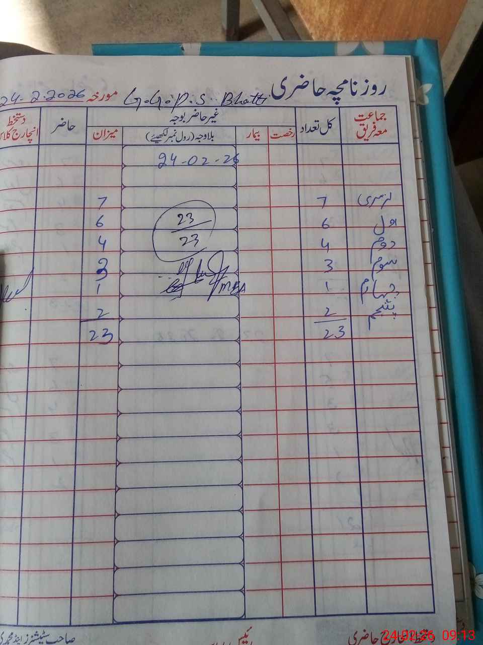 | Total Students Present | 0 | 0 | 6 | 4 | 3 | 1 | 2 | 23 | ||||||||