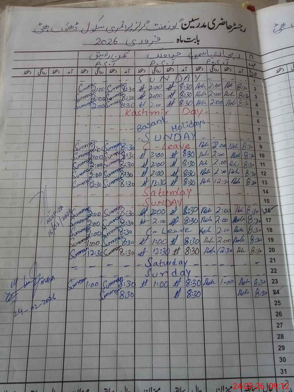 | CNIC | Full Name | Designation | R/C | Absence During Last Calender Month |