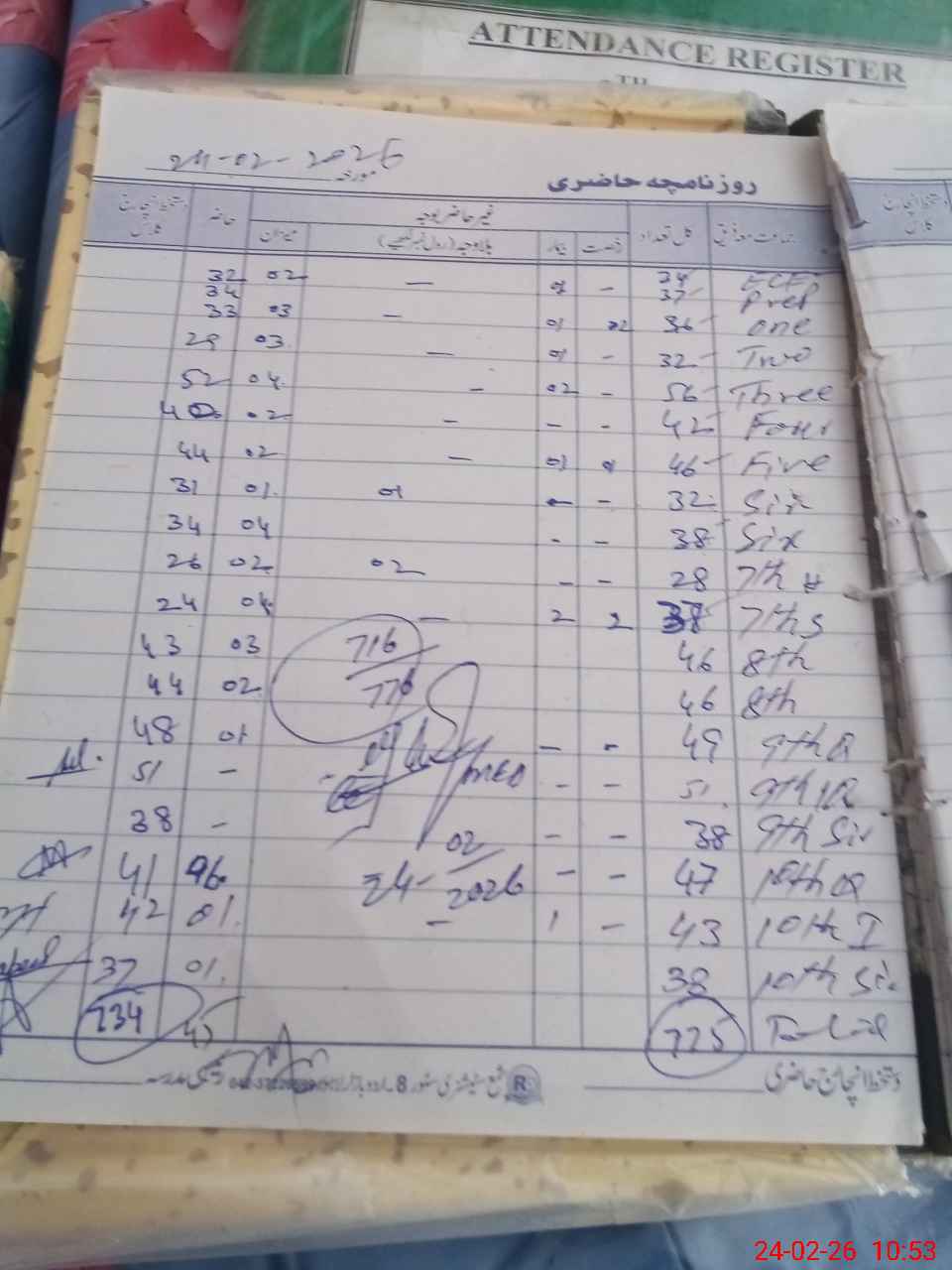 | No. of Students Present - Male | 0 | 19 | 20 | 18 | 34 | 26 | 32 | 65 | 50 | 87 | 137 | 120 | 633 | |||