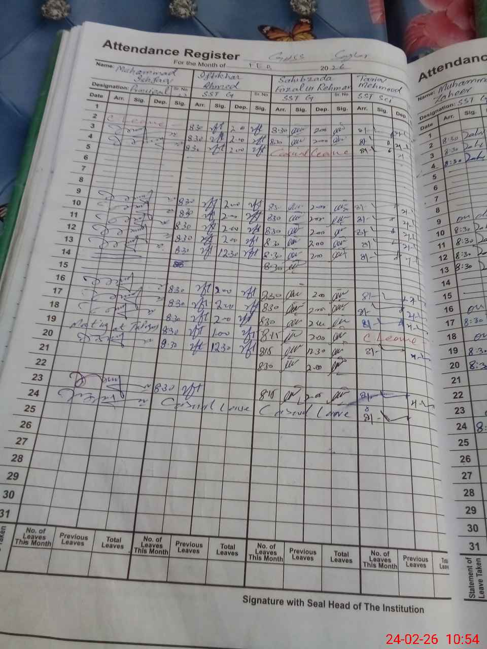 | CNIC | Full Name | Designation | R/C | Absence During Last Calender Month |