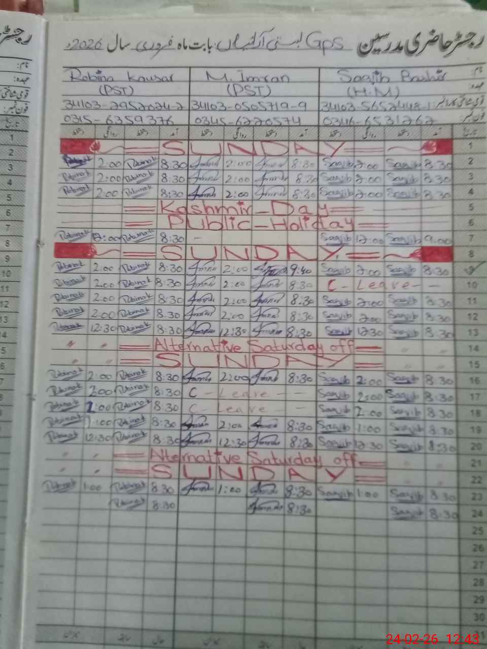 | Name: SA**** BA**** Designation: (School Headmaster's/Headmistress's) PST Phone/Cell Number: 03**** |