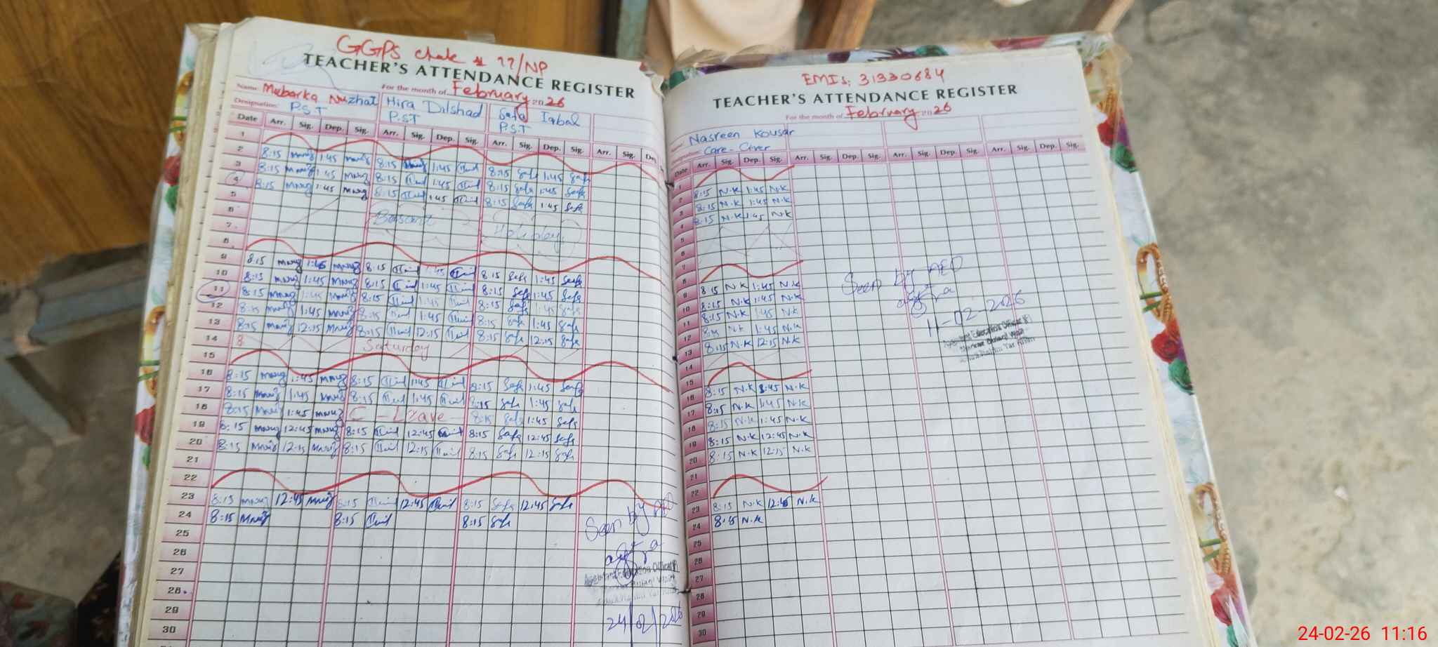| Attendance Register | Head Teacher | MEA with School | Visit Proof |