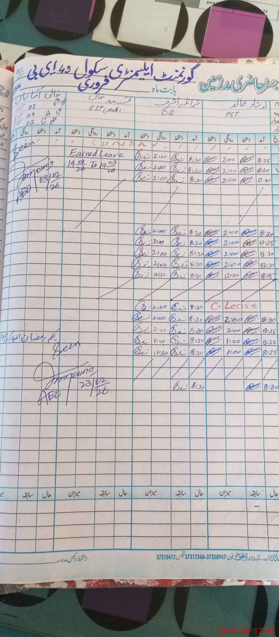 | Name: MAS**** AZ**** Designation: (School Headmaster's/Headmistress's) EST Phone/Cell Number: 03**** |