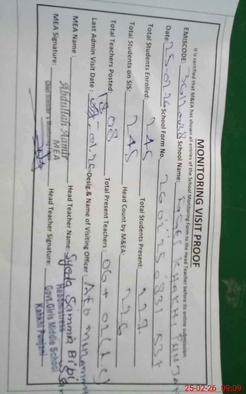 | EMIS Code: 36120038 | Name of School: GGES KHAKHI PUNJANI SHUJABAD | |||