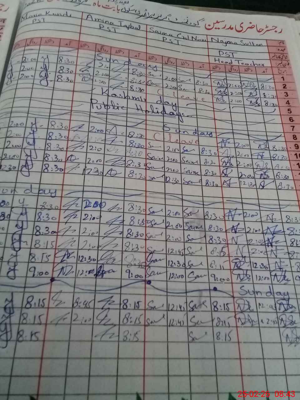 | Name: NA**** SU**** Designation: (School Headmaster's/Headmistress's) PST Phone/Cell Number: 03**** |