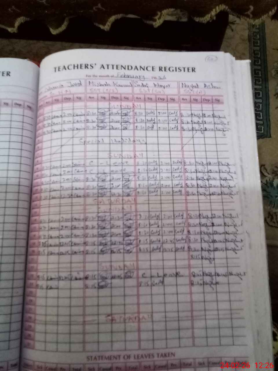 | Leave | Duty | Absent | Maternity | Medical | Ex- Pak |