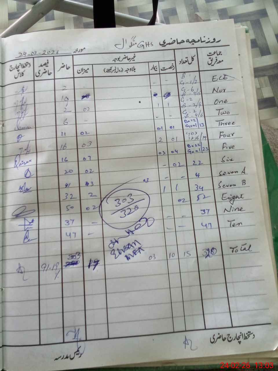 | Total Students Present | 0 | 0 | 2 | 6 | 11 | 16 | 22 | 20 | 73 | 50 | 37 | 47 | 303 | |||