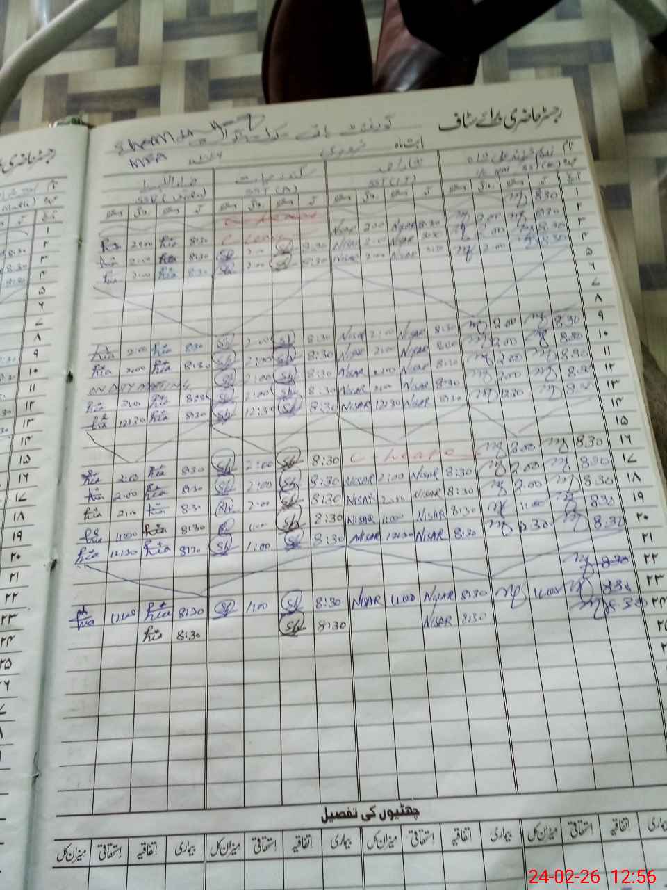 | CNIC | Full Name | Designation | R/C | Absence During Last Calender Month |