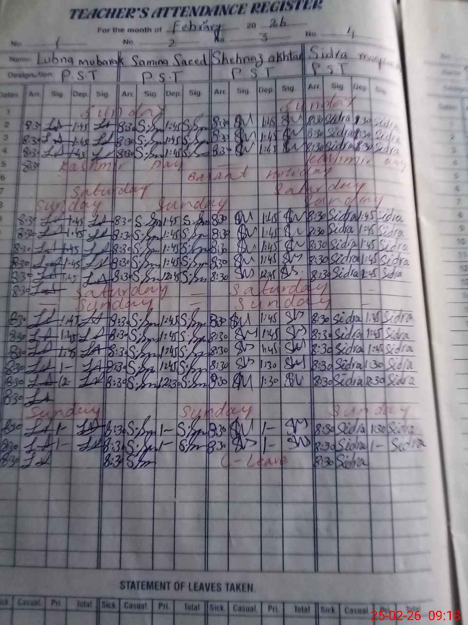 | 33**** | Sh**** Ak**** | PST Arts | Regular | 0 | 0 | 0 | 0 | 0 | 0 | 0 | 0 | 0 | Casual |