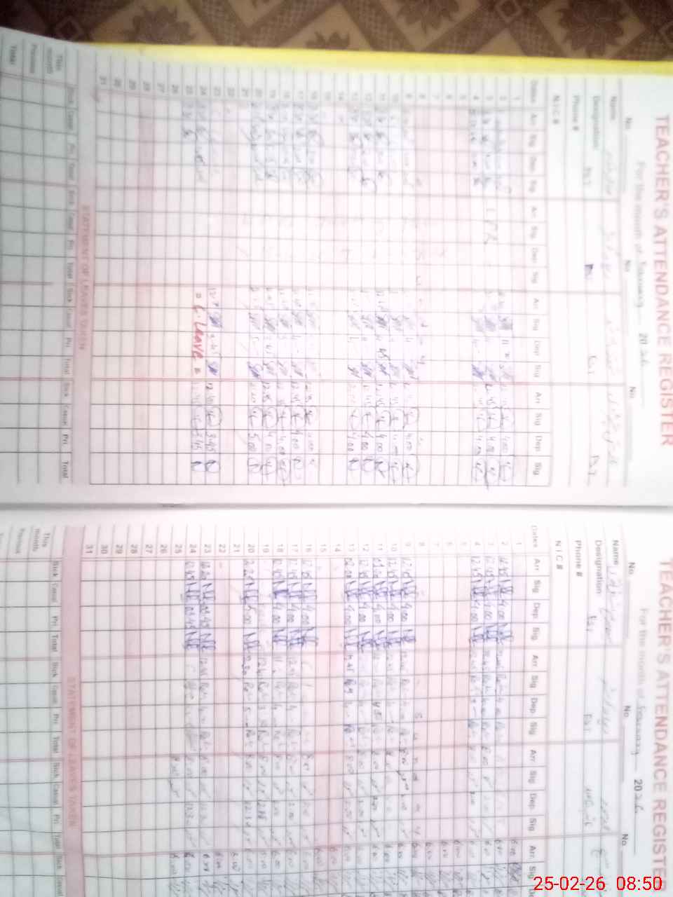 | CNIC | Full Name | Designation | R/C | Absence During Last Calender Month |