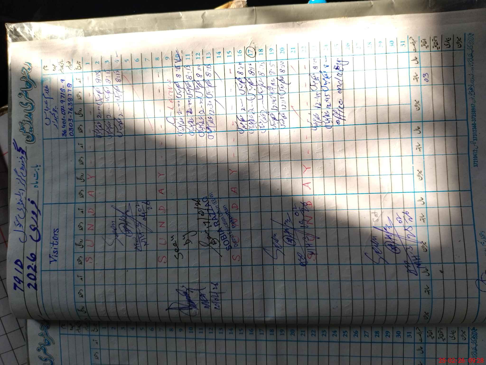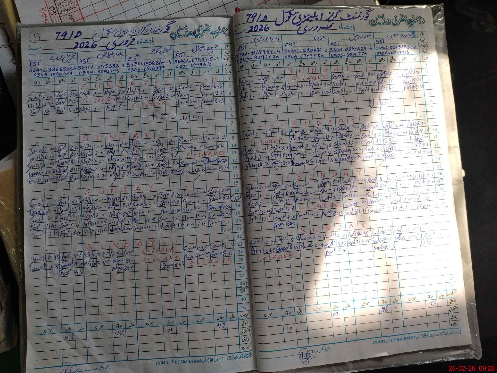 | CNIC | Full Name | Designation | R/C | Absence During Last Calender Month |
