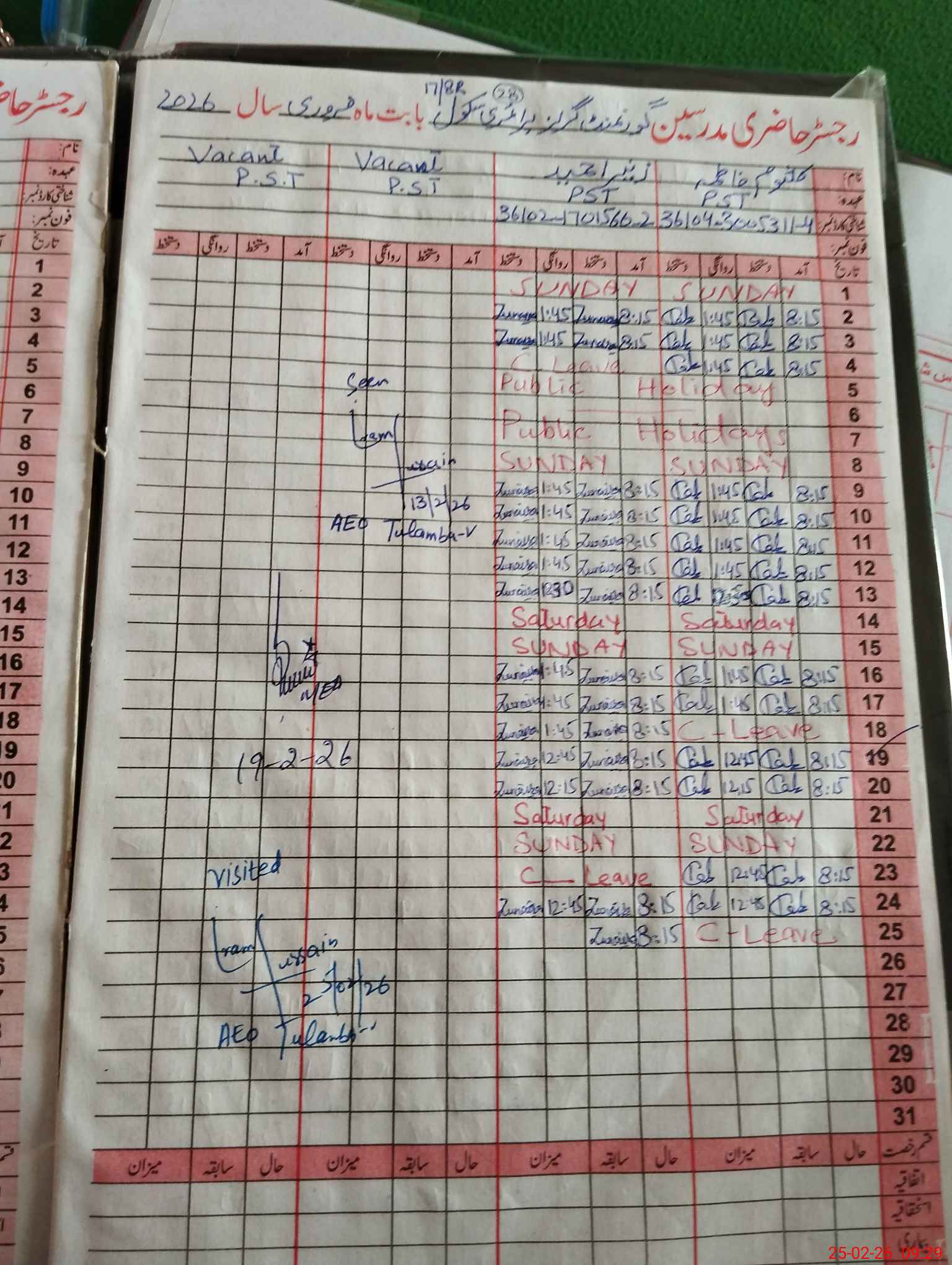 | Name: KA**** FA**** Designation: (School Headmaster's/Headmistress's) PST Phone/Cell Number: 03**** |