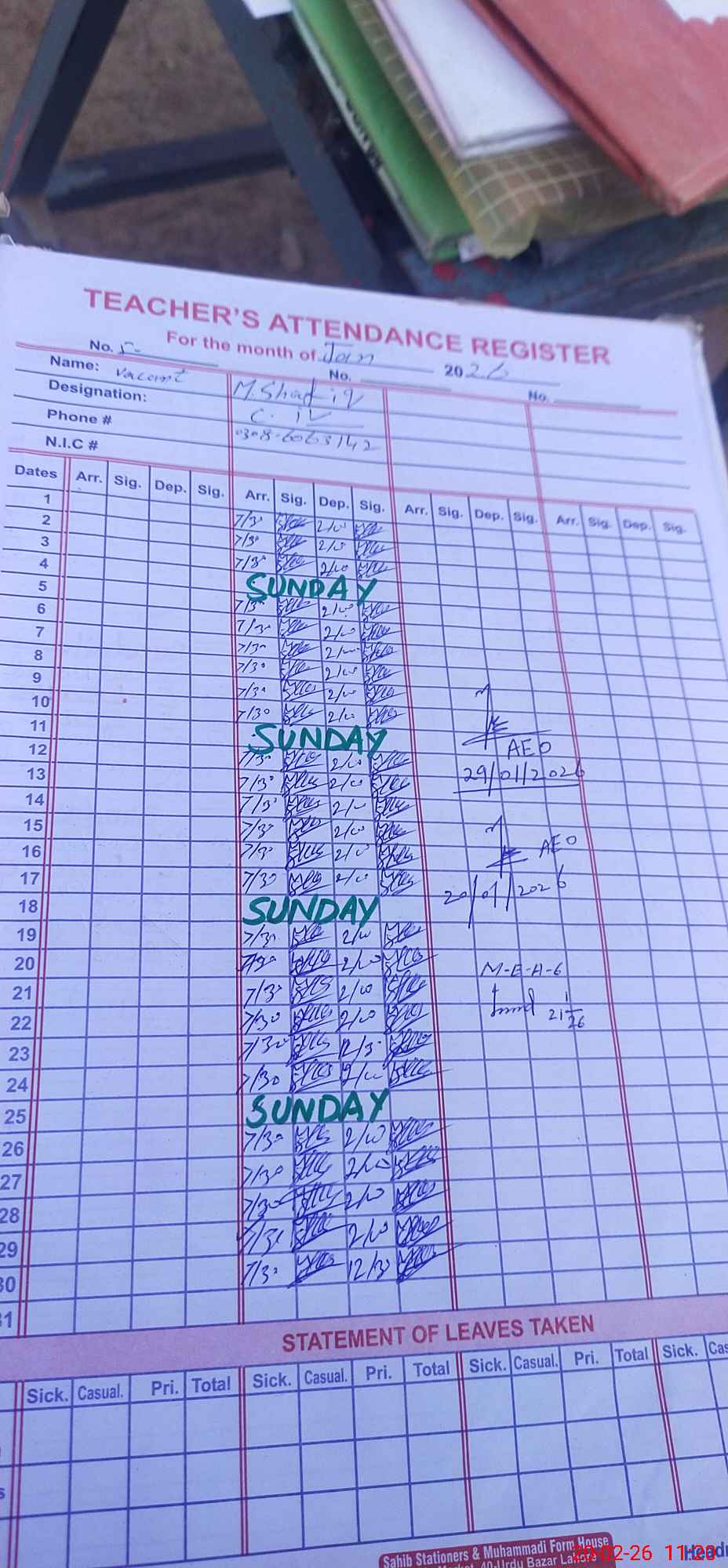 | Name: Na**** Ma**** Designation: (School Headmaster's/Headmistress's) PST Phone/Cell Number: 03**** |