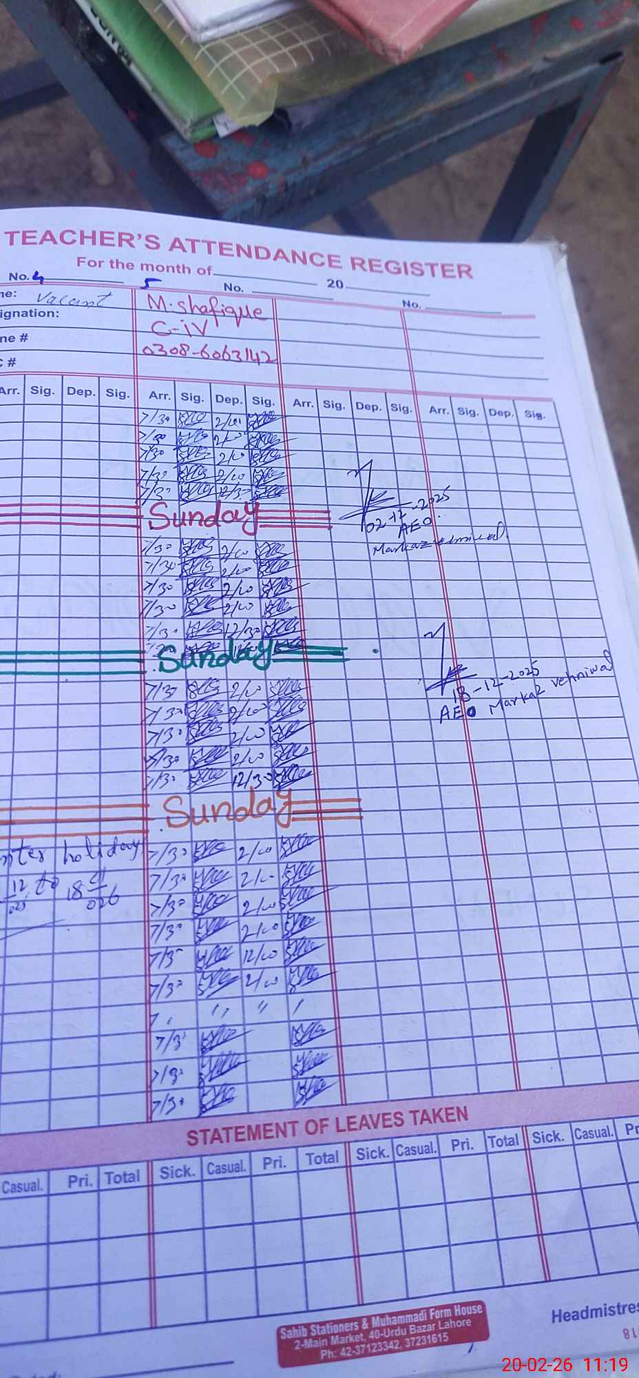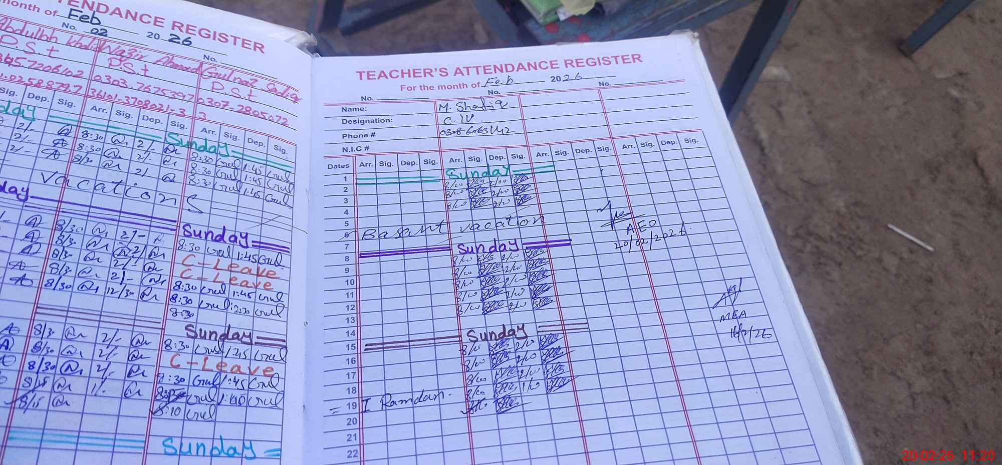| Attendance Register | Head Teacher | MEA with School | Visit Proof |