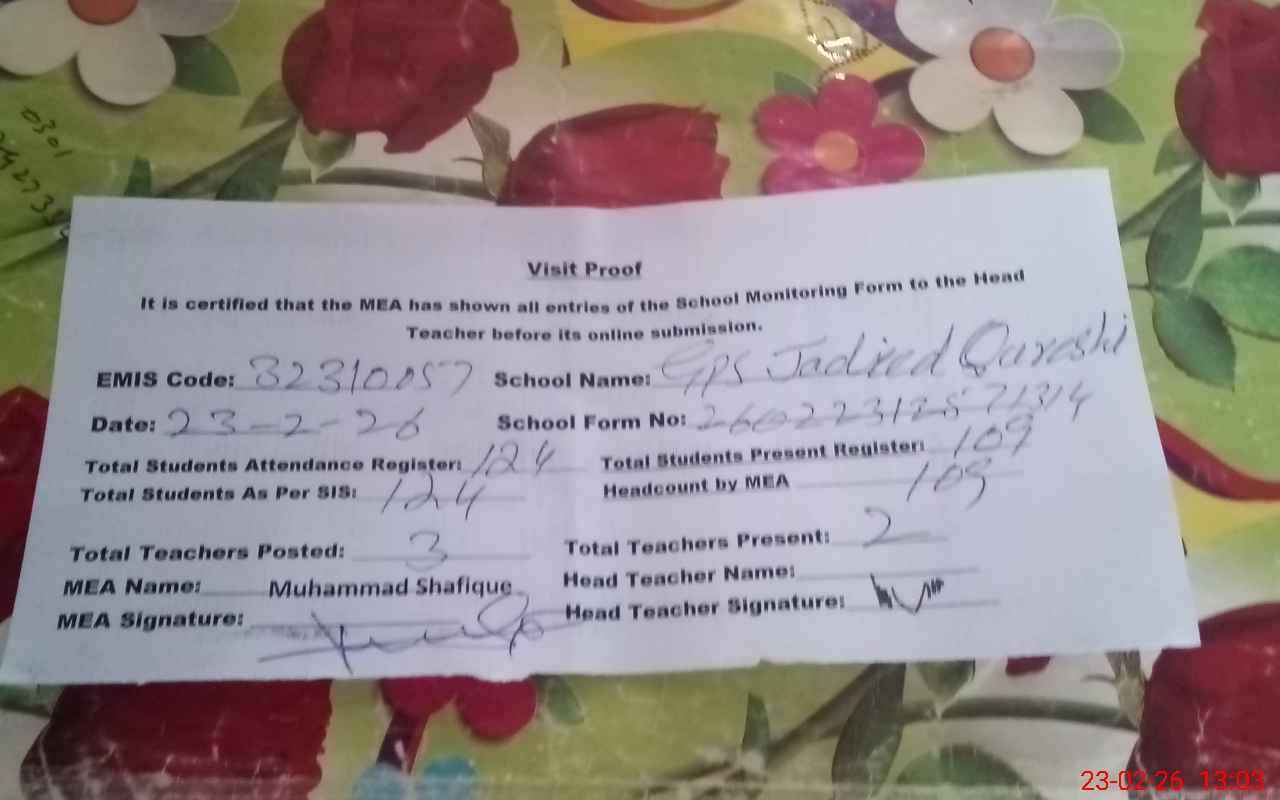 | EMIS Code: 32310057 | Name of School: GPS JADEED QURESHI | |||