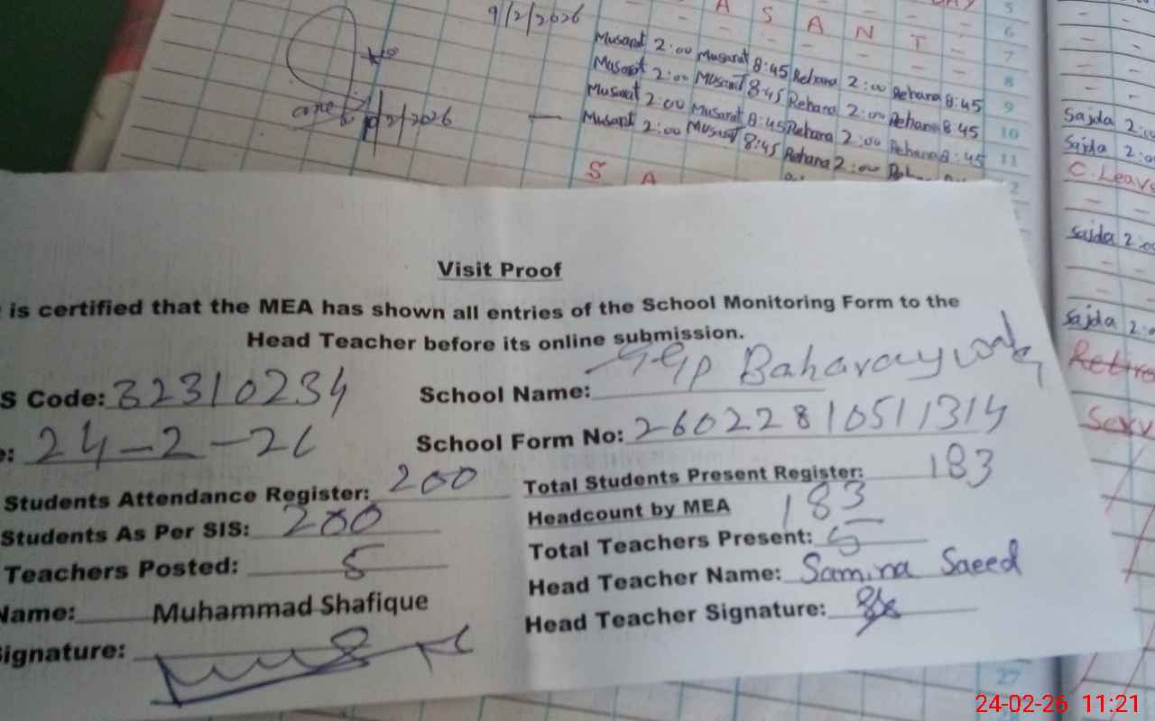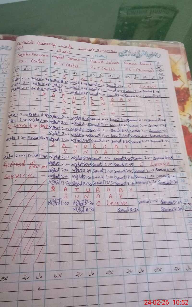 | EMIS Code: 32310234 | Name of School: GGPS BAHARAY WALA | |||