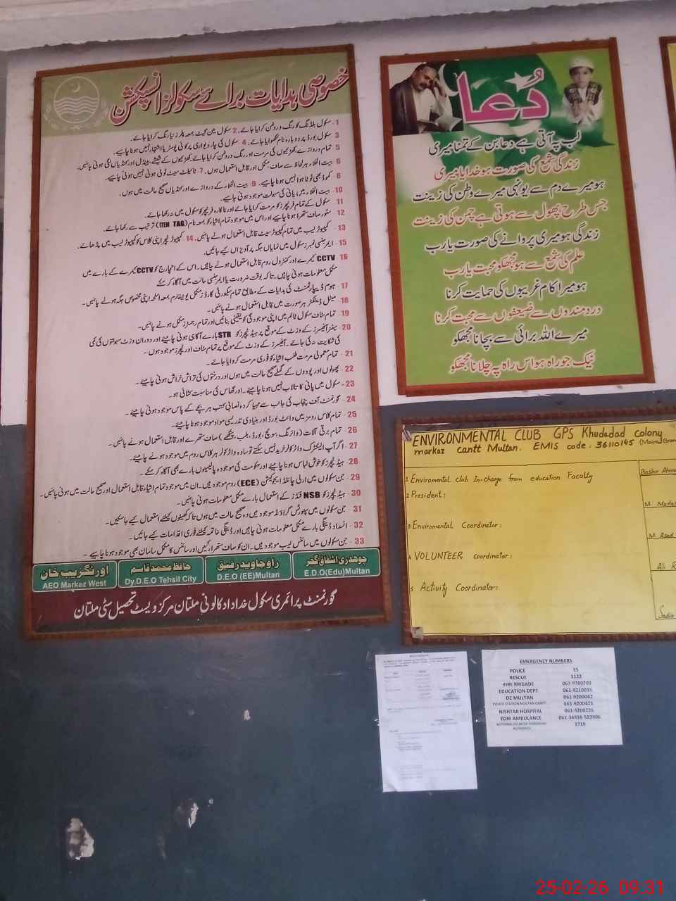 | Certified that this School was Inspected by the Undersigned MEA/DMO Today and the Information Stated Above is as Per Record. | |||||