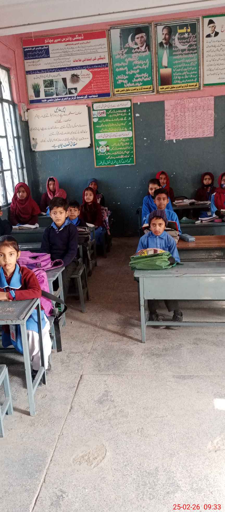 | Total no. of Classrooms: 2 No. of Classrooms Used for Teaching: 2 No. of Classrooms Storing Old Furniture, FTBs, etc: 0Comments if Any: SATISFACTORY |
