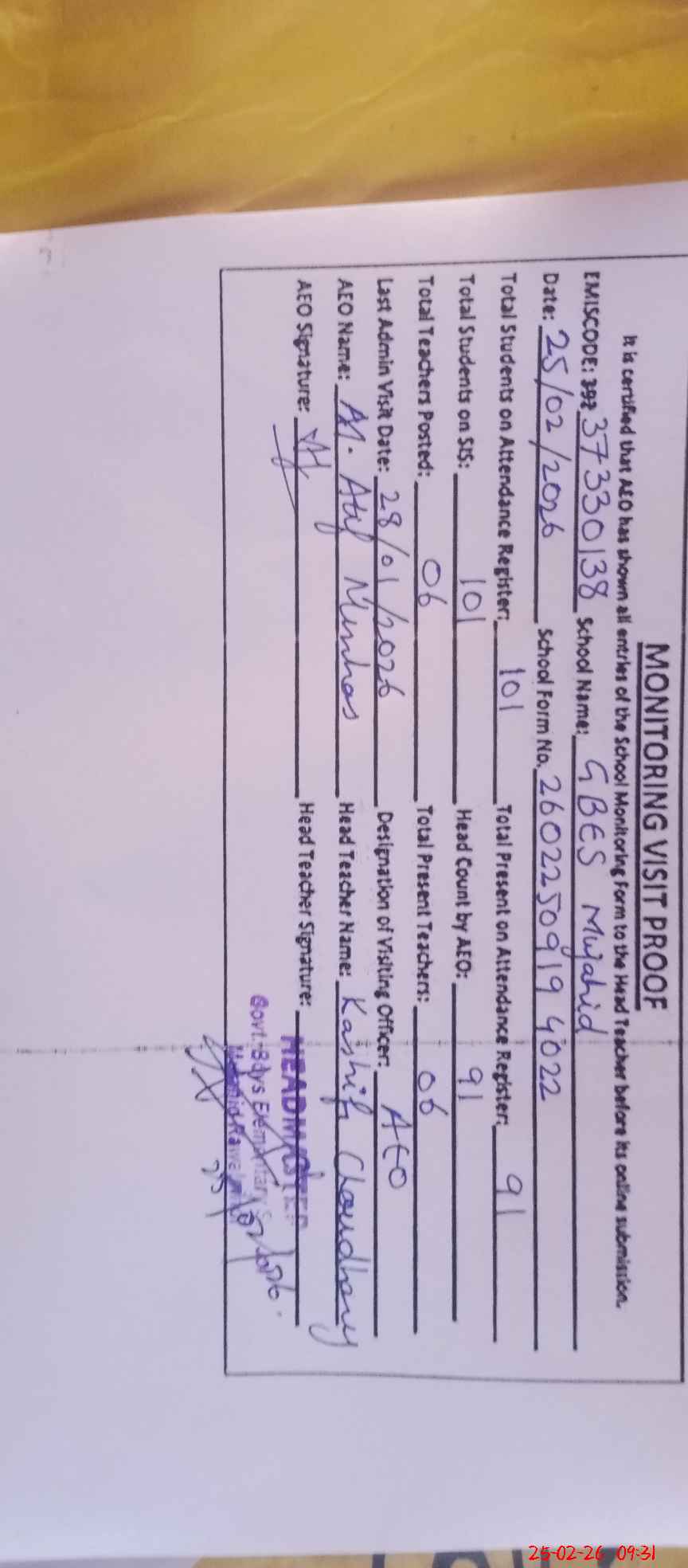 | Certified that this School was Inspected by the Undersigned MEA/DMO Today and the Information Stated Above is as Per Record. | |||||