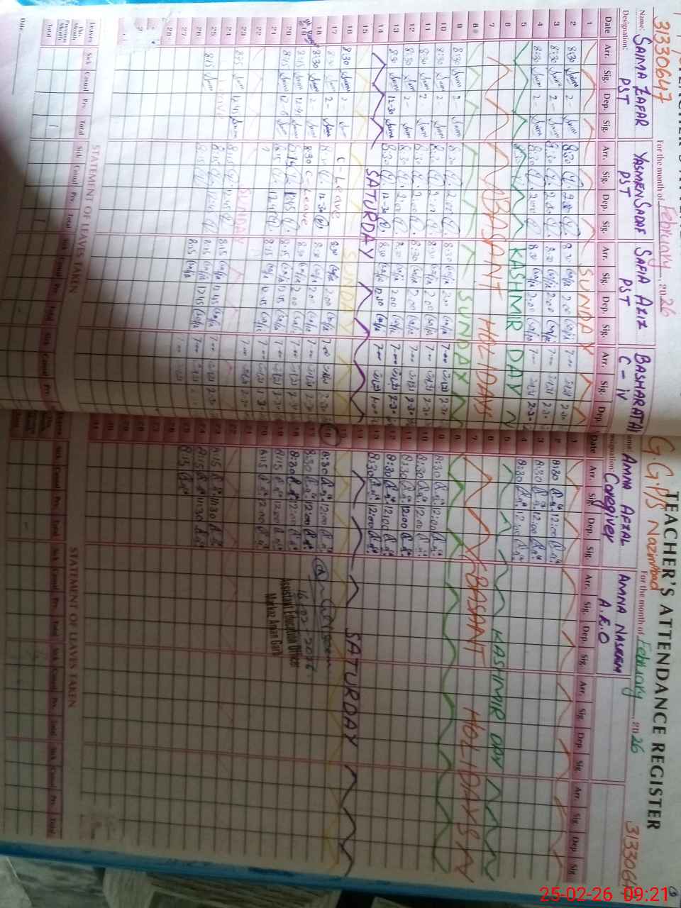 | CNIC | Full Name | Designation | R/C | Absence During Last Calender Month |