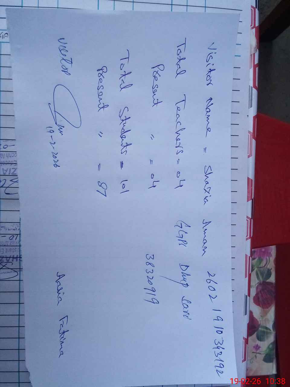 | Name: AA**** FA**** Designation: (School Headmaster's/Headmistress's) PST Phone/Cell Number: 03**** |