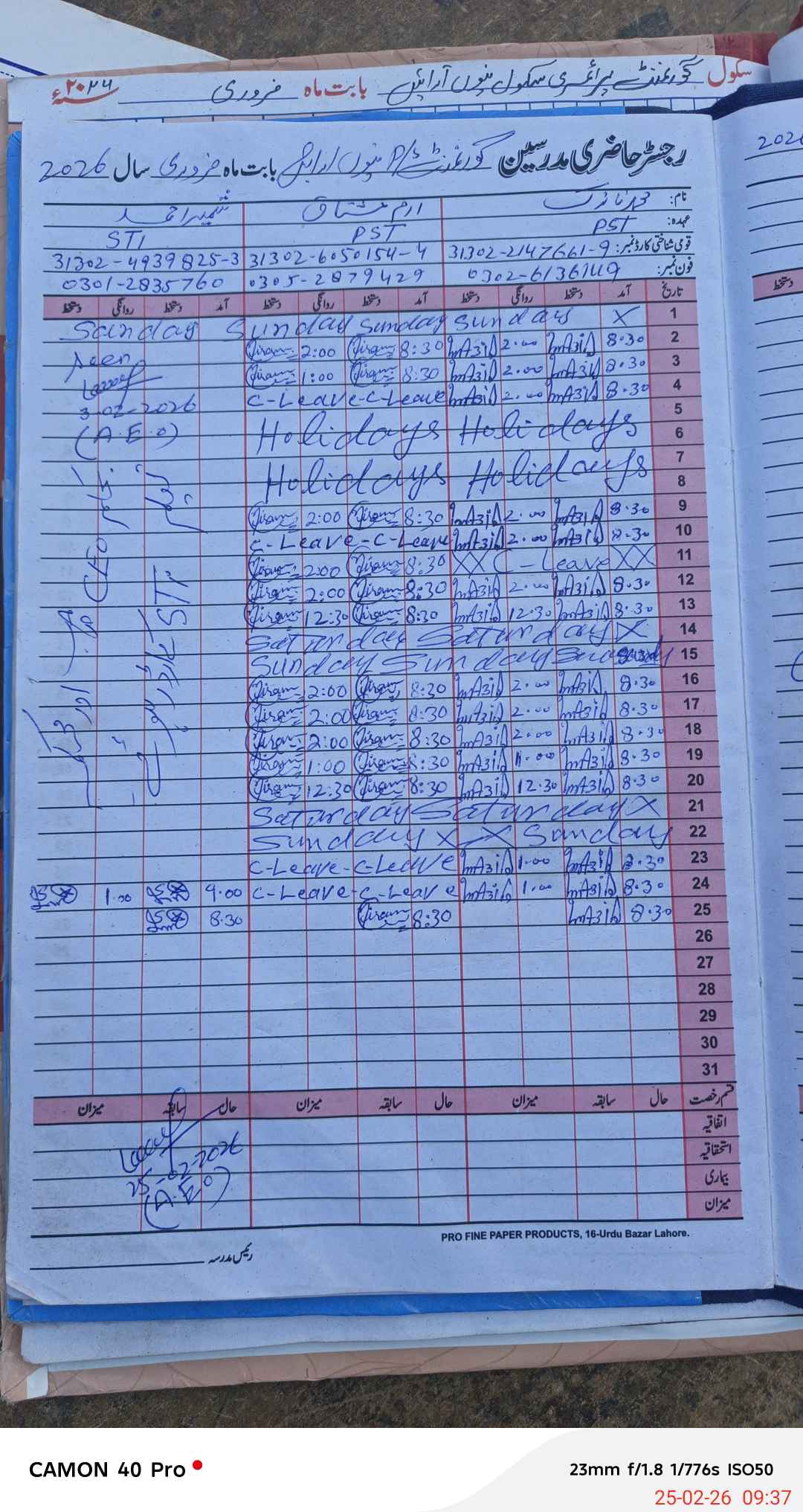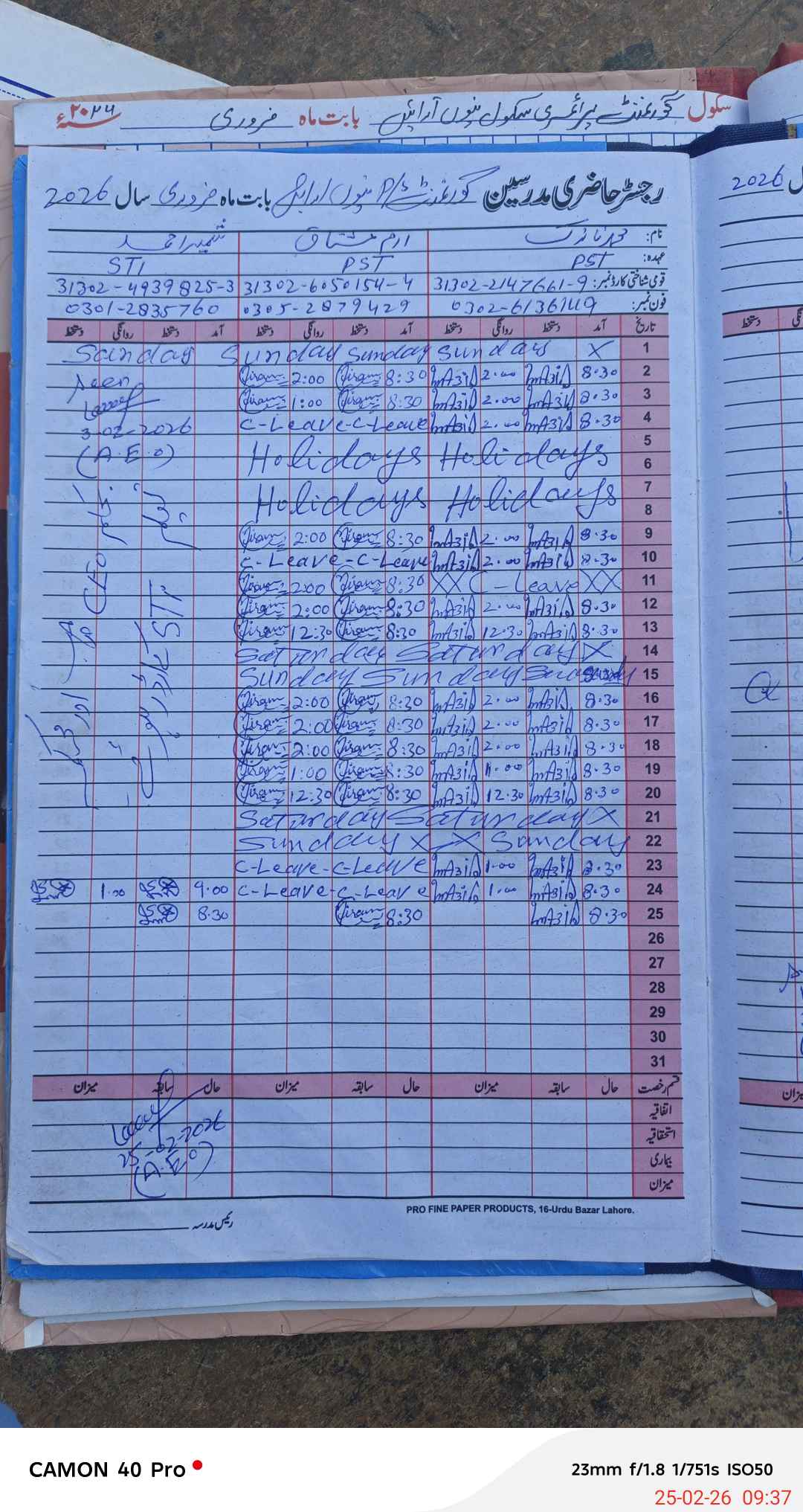 | Name: MU**** NA**** Designation: (School Headmaster's/Headmistress's) PST/PTC/JV Phone/Cell Number: 03**** |