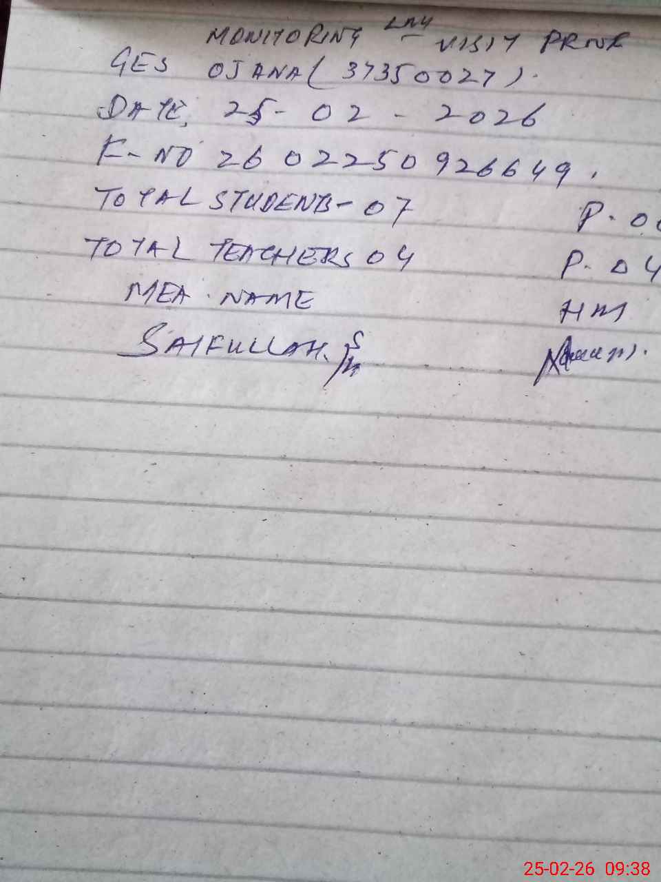 | Monitoring Date: 25-02-2026 | Start Time: 25-02-2026 09:21 AM | End Time: 25-02-2026 09:38 AM | Name of MEA: Sa**** | |
