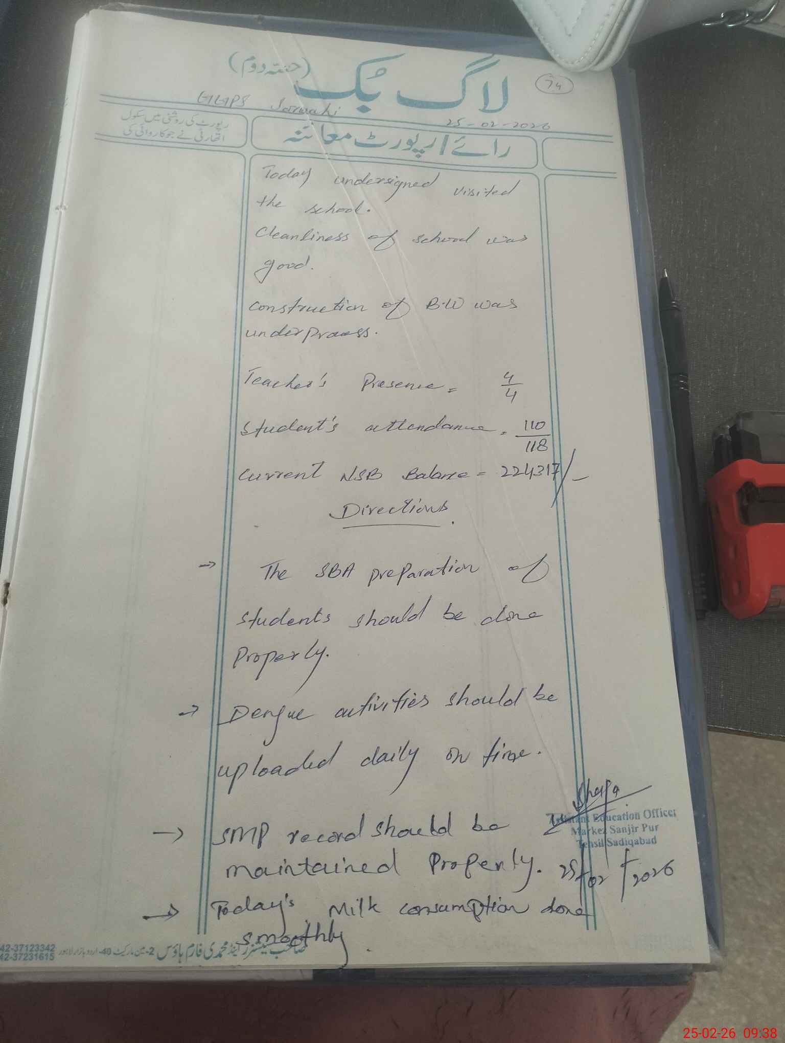 | Certified that this School was Inspected by the Undersigned MEA/DMO Today and the Information Stated Above is as Per Record. | |||||