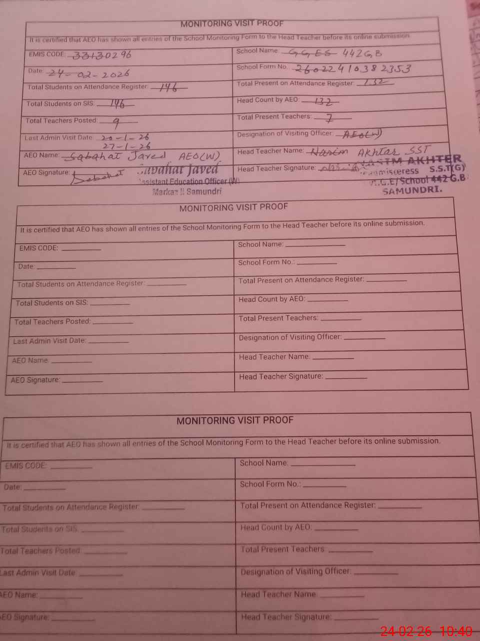 | EMIS Code: 33130296 | Name of School: GGES CHAK NO 442 GB | |||