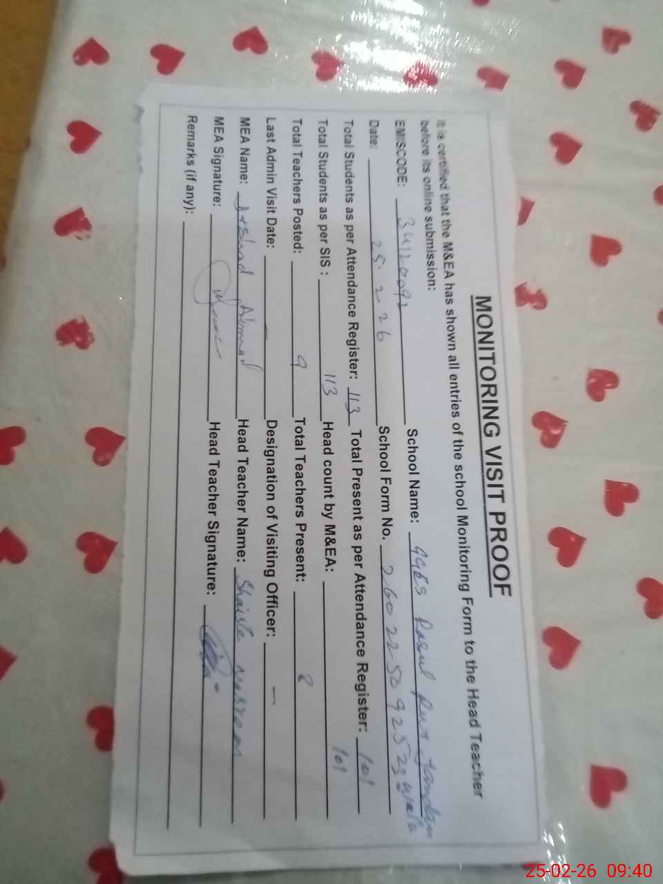 | Certified that this School was Inspected by the Undersigned MEA/DMO Today and the Information Stated Above is as Per Record. | |||||