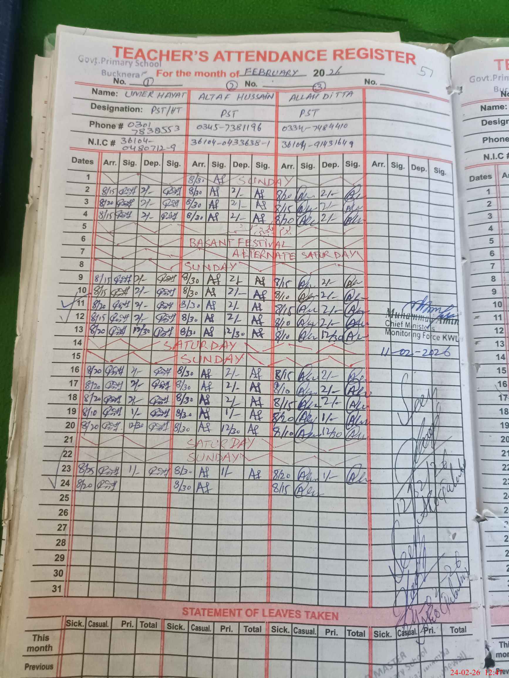 | Name: Um**** Ha**** Designation: (School Headmaster's/Headmistress's) PST Phone/Cell Number: 03**** |
