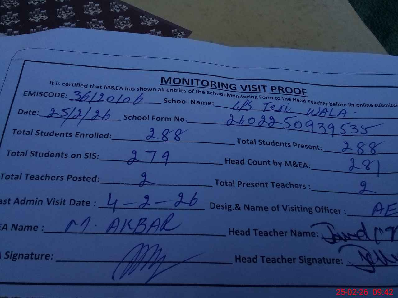 | EMIS Code: 36120106 | Name of School: GPS TERI WALA VILLAGE GANWEN SHUJABAD | |||