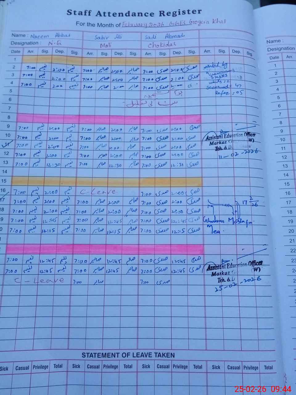 | 35**** | Na**** Ab**** | NAIB QASID | Regular | 1 | 0 | 0 | 0 | 0 | 0 | 0 | 0 | 1 | Casual |