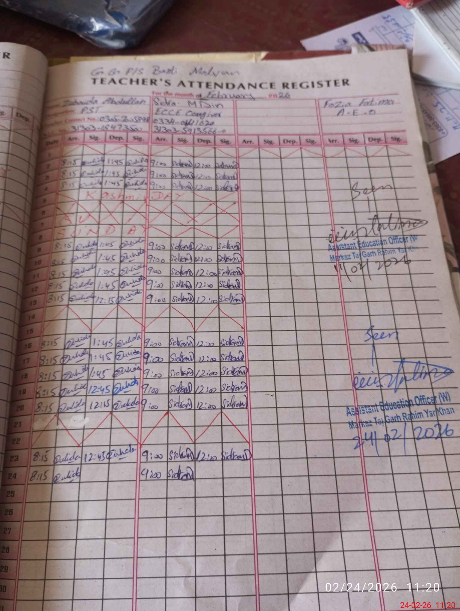 | Name: Af**** Sa**** Designation: (School Headmaster's/Headmistress's) PST Phone/Cell Number: 03**** |