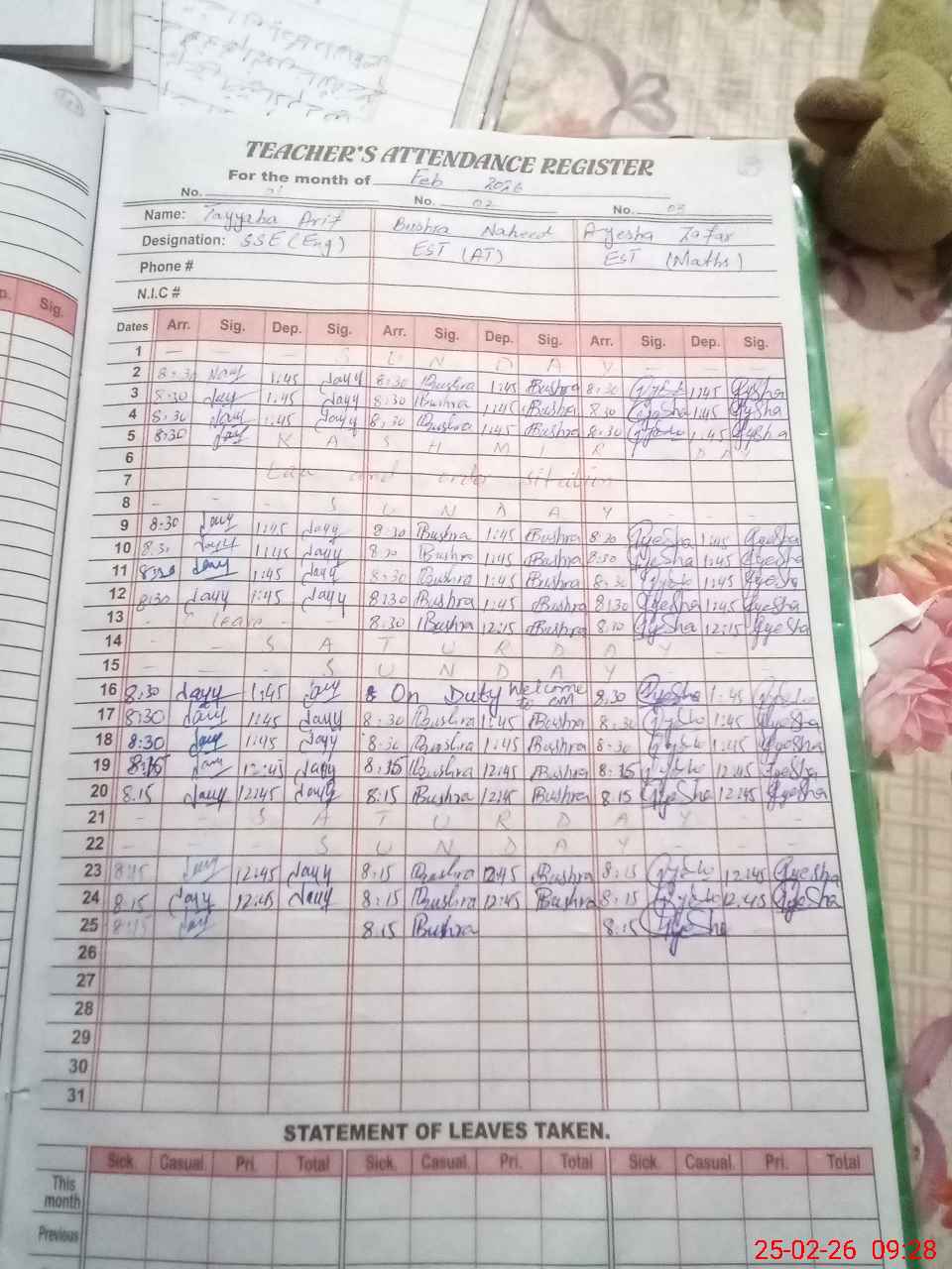 | Name: TA**** AR**** Designation: (School Headmaster's/Headmistress's) SSE ENGLISH Phone/Cell Number: 03**** |
