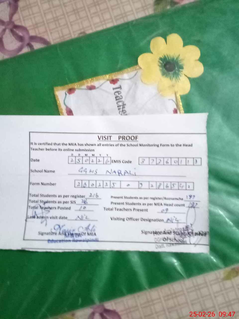 | EMIS Code: 37360113 | Name of School: GGHS NARALI | |||