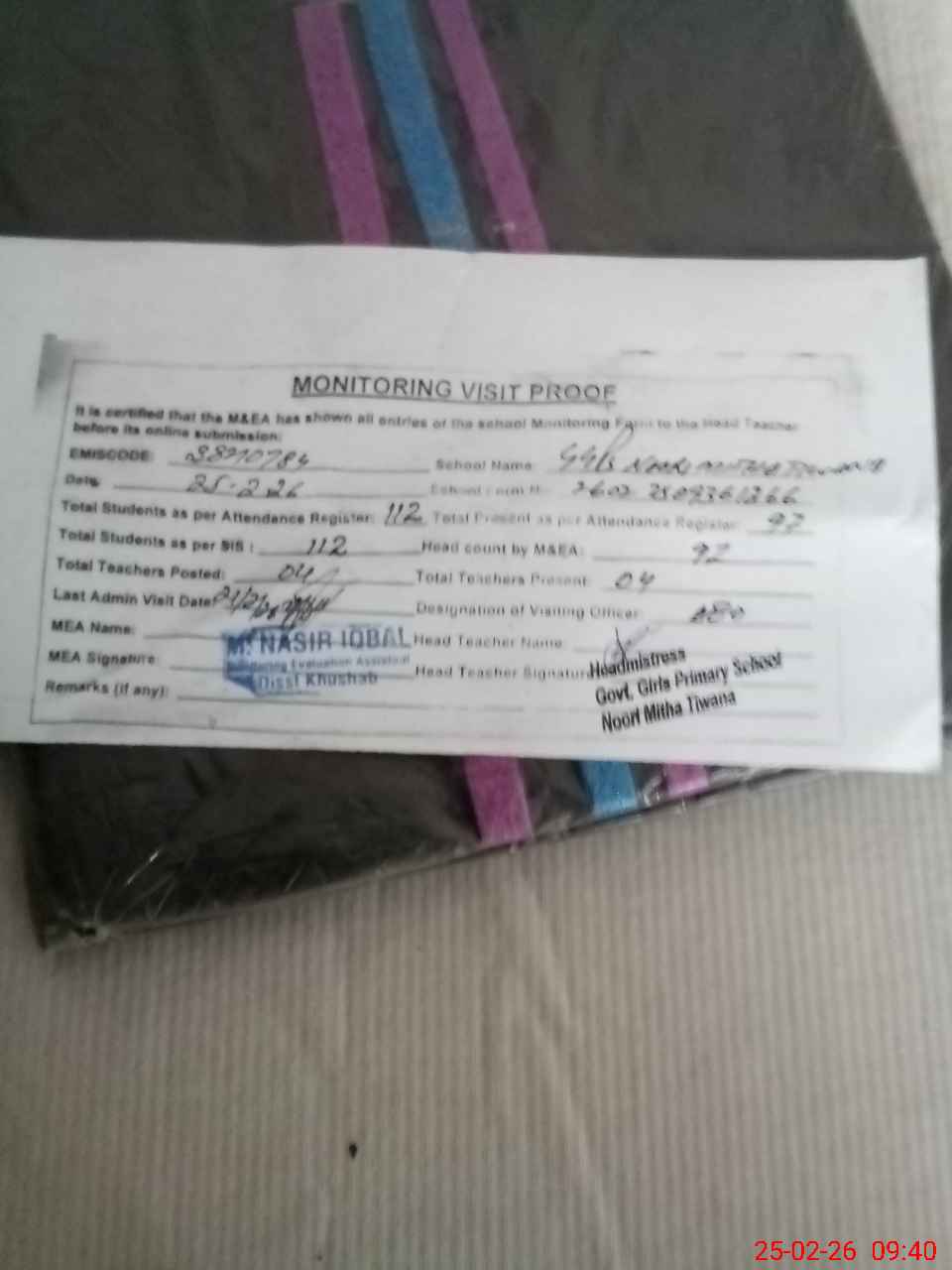 | EMIS Code: 38210784 | Name of School: GGPS NOORI MITHA TIWANA | |||