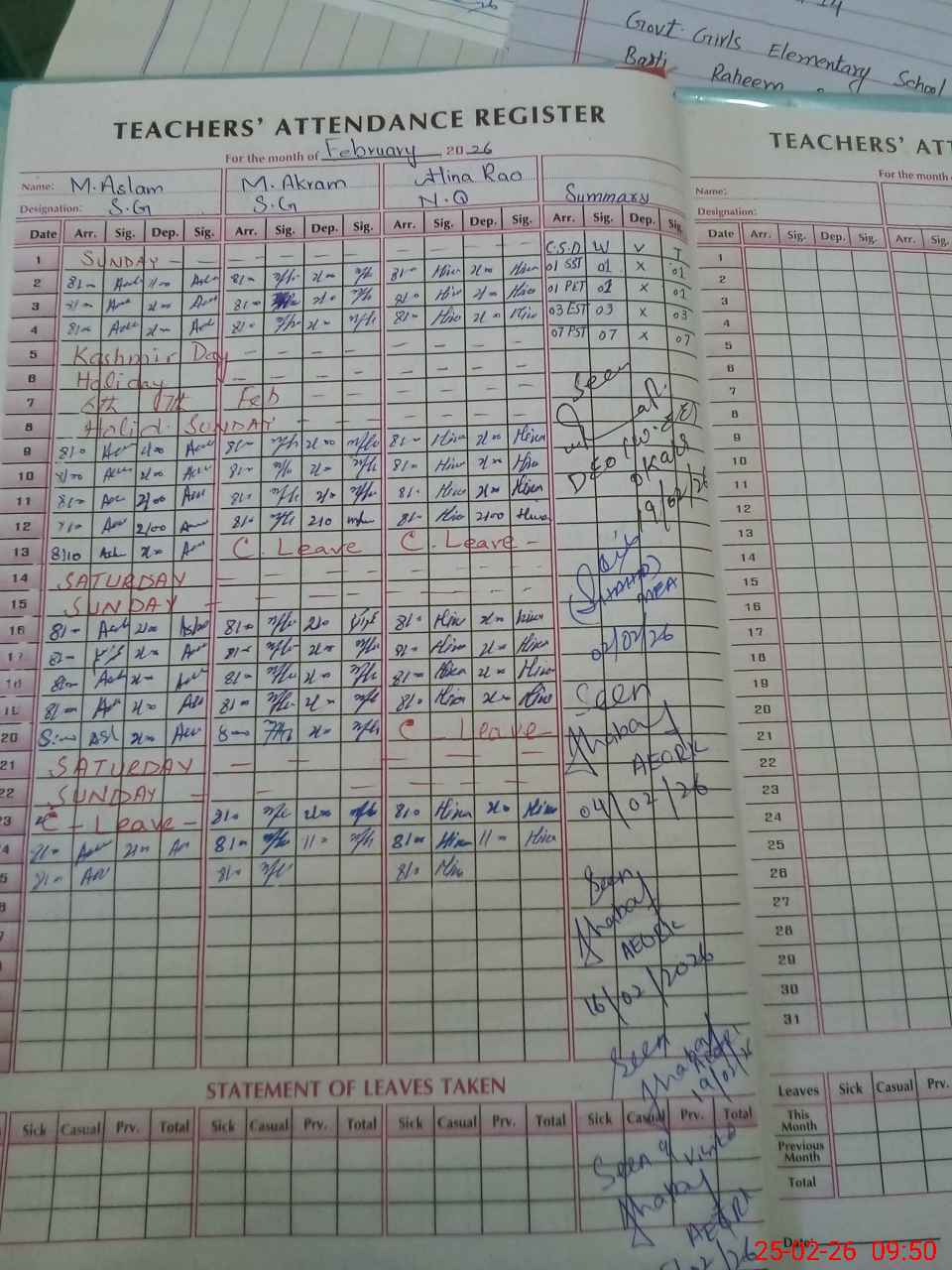 | CNIC | Full Name | Designation | R/C | Absence During Last Calender Month |