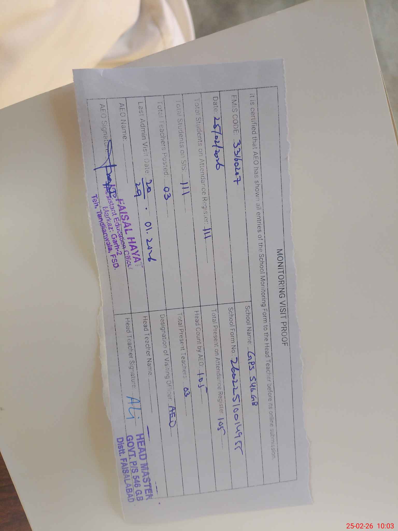 | Name: AL**** AH**** Designation: (School Headmaster's/Headmistress's) PST Phone/Cell Number: 03**** |